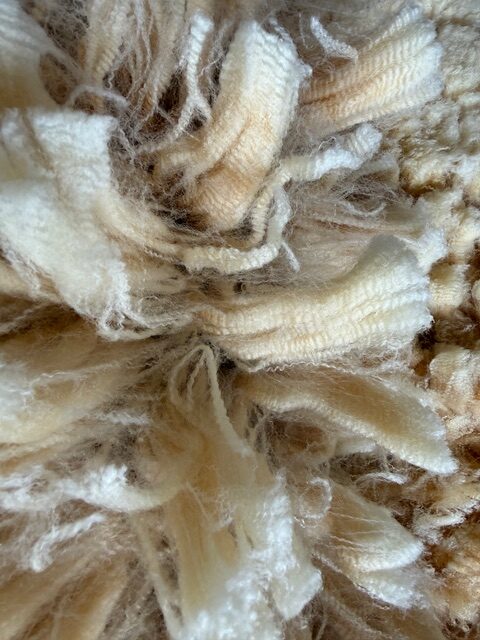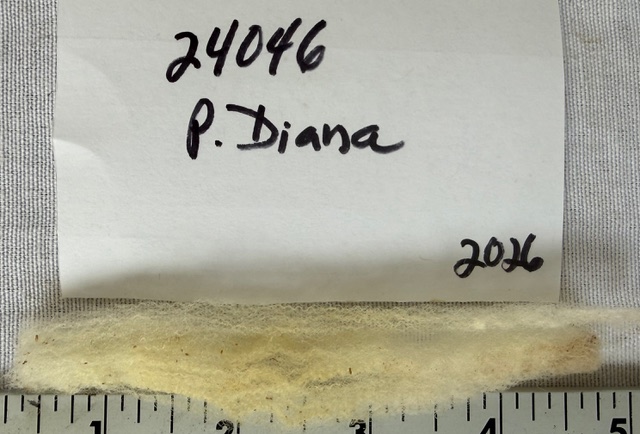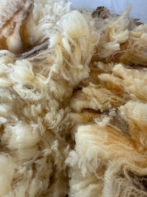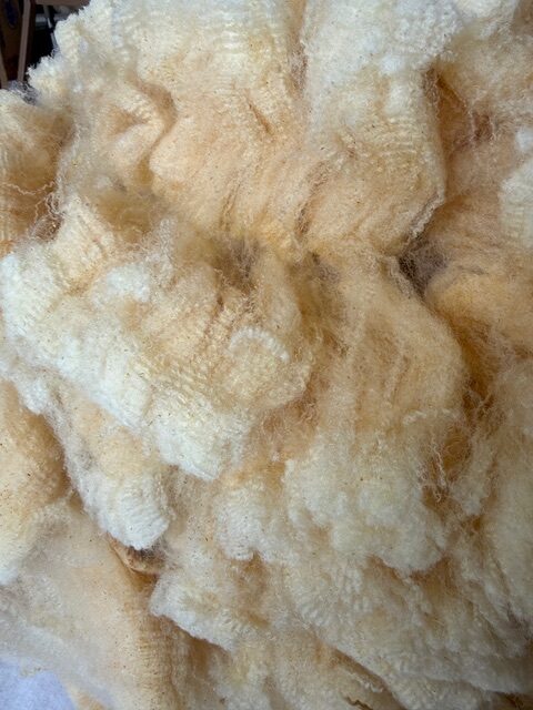 Princess Diana is 75% Cormo and 25% Corriedale. Her fleece is very fine and super soft. It was protected with a coat, has been heavily skirted, and is very clean. It has a 5″ staple length. Skirted weight of the full fleece is 4.7 pounds, and I am selling it as a whole fleece only. Price $24/lb. Cost for the fleece: $112.80 + tax, with $30 shipping. I will ship as economically as possible and refund you any difference in shipping cost .