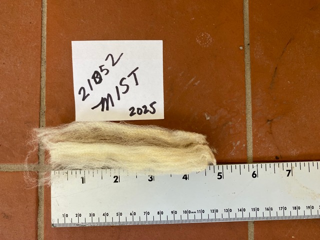 This is the 2025 fleece from our Cormo-Corriedale cross ewe, Mist. It is white and super-soft. It was protected with a coat, has been heavily skirted, and is very clean. It has a staple length of 5 inches. Skirted weight of the full fleece is 6.8 pounds, and I am selling the fleece as two half-fleeces, 3.4 lbs each. Price $24/lb. Cost for half-fleece: $81.60 + tax, with $21 shipping. Order two if you want the whole fleece. For the whole fleece I will ship as economically as possible and refund you any difference in shipping cost .