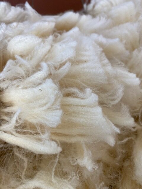Raw white Cormo/Corriedale fleece for handspinners. Sold as two half-fleeces.