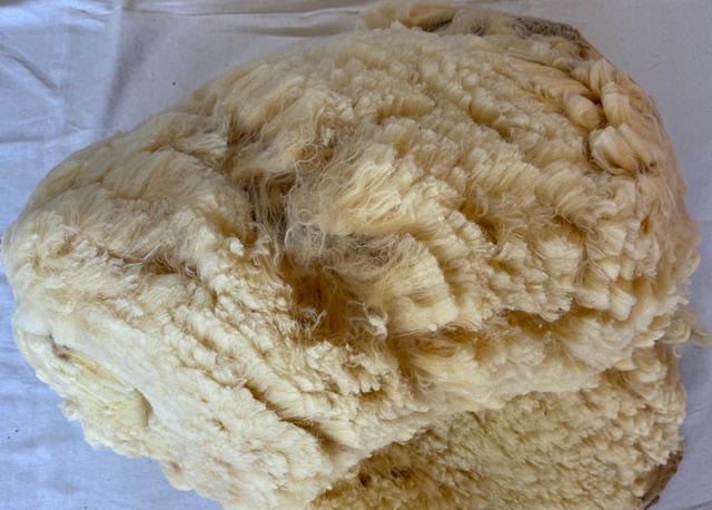 Raw white Cormo/Corriedale fleece for handspinners. Sold as two half-fleeces.