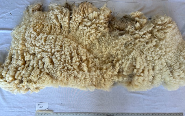 This is the 2026 fleece from our Cormo-Corriedale cross ewe, Mist. It is white and super-soft. It was protected with a coat, has been well-skirted, and is very clean. It has a staple length of 6inches. Skirted weight of the full fleece is 6.4 pounds, and I am selling the fleece as two half-fleeces, 3.2 lbs each. Price $24/lb. Cost for half-fleece: $76.80 + tax, with $21 shipping. Order two if you want the whole fleece. For the whole fleece I will ship as economically as possible and refund you any difference in shipping cost .