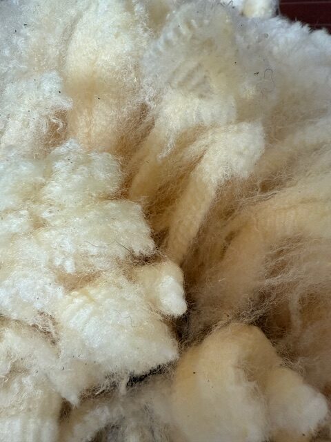 Raw white Cormo-Corriedale fleece for handspinners. Sold as two half-fleeces.