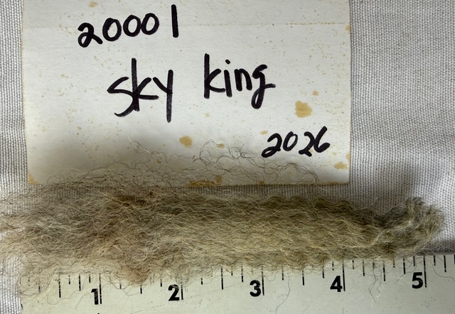Sky King is a recessive-colored Romney ram. His fleece is a range of medium-greys with nice crimp and luster. It was protected with a coat, has been well-skirted and is very clean. It has a staple length of 5 inches. Skirted weight of the full fleece is 6.5 pounds, and I am selling it as two half-fleeces, 3.2 lbs each. Price $18/lb. Cost for a half-fleece: $57.60 + tax, with $21 shipping. Order two if you want the whole fleece. I will ship as economically as possible and refund you the difference in shipping cost .