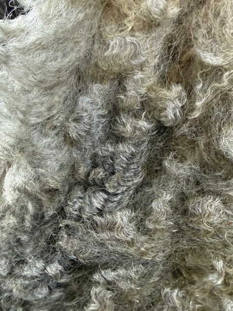 Raw grey Romney fleece for handspinners. Sold as two half-fleeces.